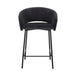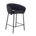 An appealing mix of clean lines and sleek curves this barstool's cushion bucket seat is wrapped in fabric and rests on slender metal legs in a versatile black finish. The low back and footrest on the Asher Barstool finish the look perfectly for an inviting style.Assembly required: