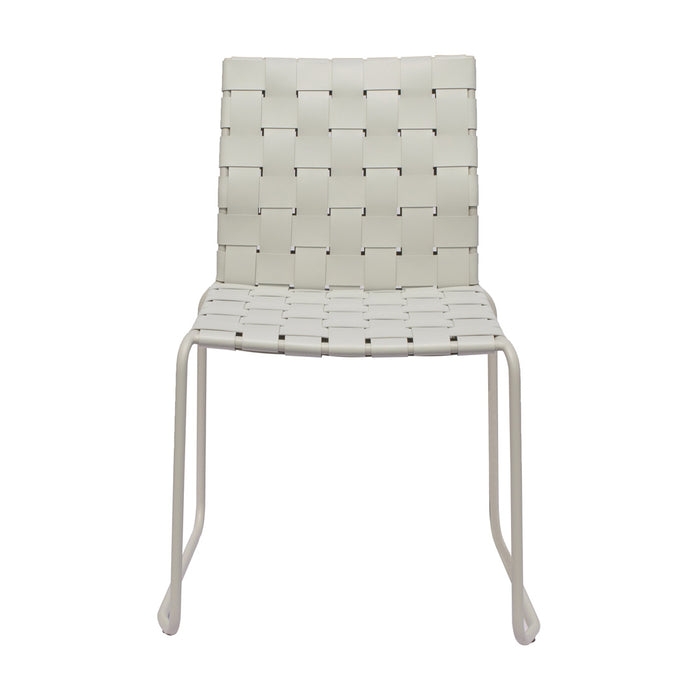 Ideal when space is at a premium, the Quinn Dining chair may stack to reduce its footprint, but it is never compact on style. Designed with a blissful woven back and seat this dining chair has a modern sled base for a sleek look.Assembly required:
