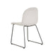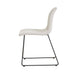 Upholstered for comfort, the Smith Sleigh Dining Chair has a sleek metal base for contemporary appeal and simplicity.Assembly required:
