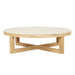Cross-base Coffee Table with Wirebrushed Solid Oak and Stone TopAssembly required: