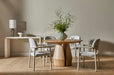 Commanding interest through striking forms and a bold symmetrical base, the Bloom Dining Table features a rounded top, inviting connectivity in matt dark oak or natural ash.Assembly required: